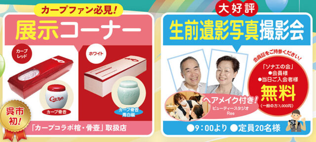 また、呉市では初となる「カープコラボ棺&骨壺」の展示も実施します。