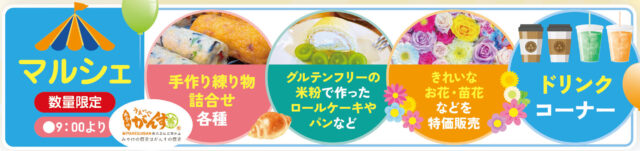 会場では、毎年ご好評をいただいている豪華ガラポン抽選会をはじめ、地元の味や手作りの品が並ぶマルシェを開催します。
